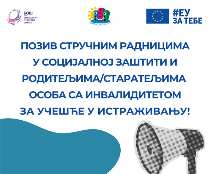 POZIVAMO STRUČNE RADNIKE U SOCIJALNOJ ZAŠTITI I RODITELJE/STARATELJE OSOBA SA INVALIDITETOM da uzmu učešće u istraživanju!